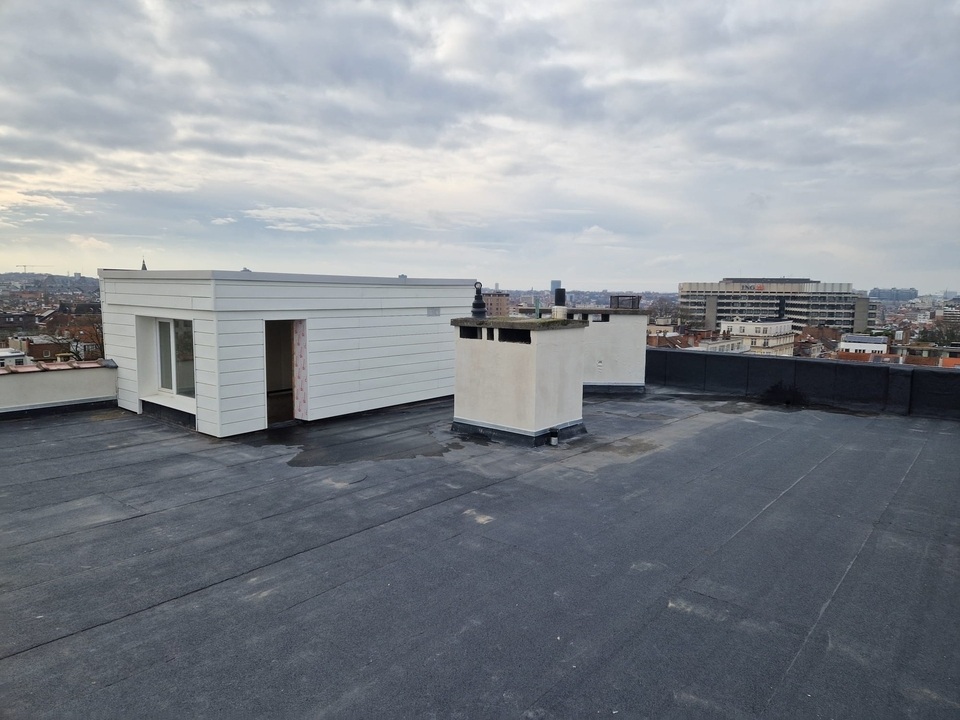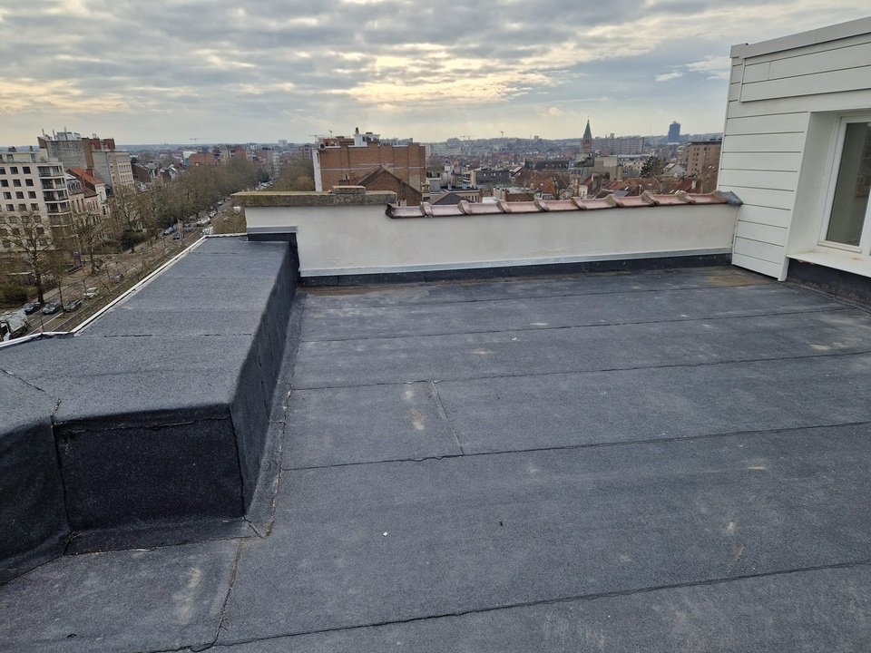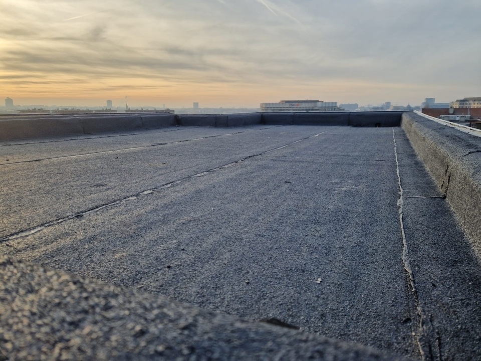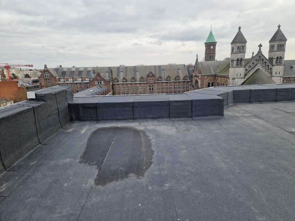 Gros plan sur la rénovation de la toiture plate de cet immeuble en plein cœur du quartier Saint-Michel. 🏢