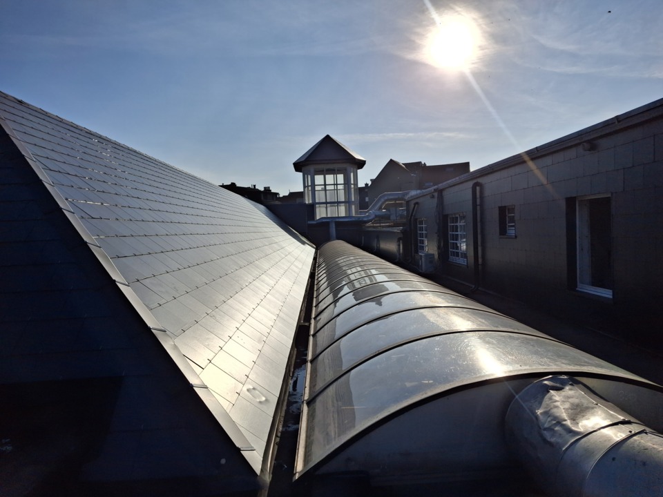 En plus de la nouvelle couverture en ardoises, nos équipes ont réalisé la réfection de l’étanchéité des corniches et l’habillage des lucarnes en EPDM.