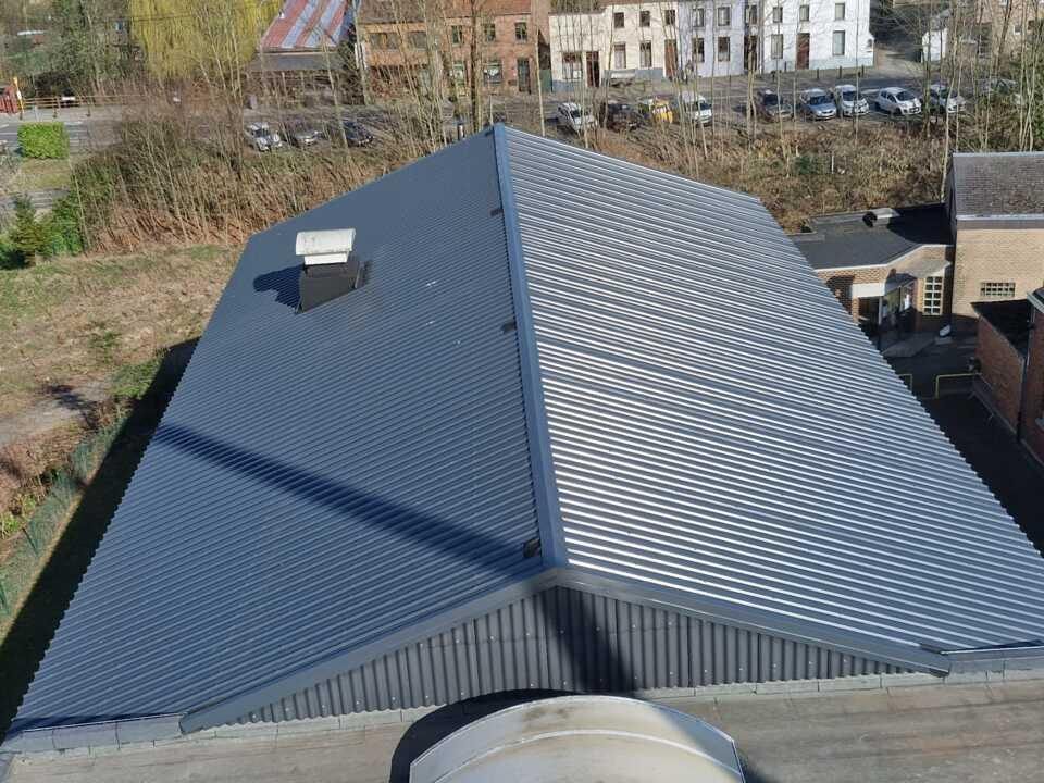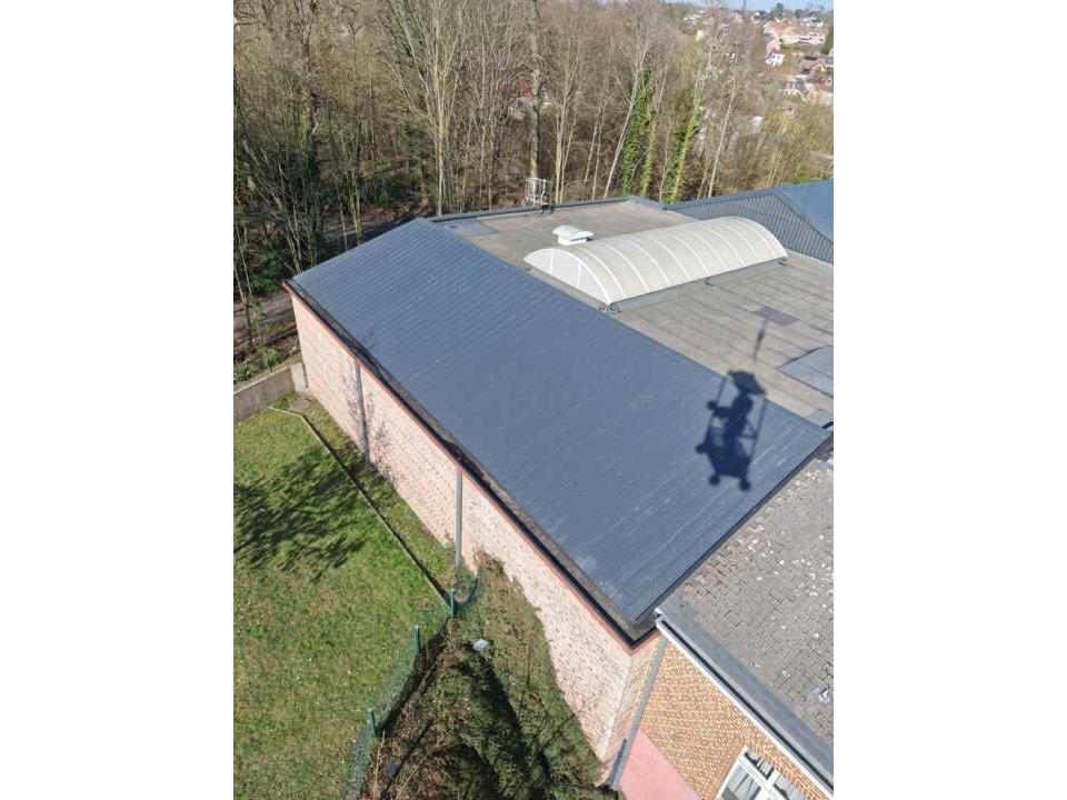 Pour ce projet, nous avons remplacer la partie supérieure de la toiture de la salle omnisport de l’école communale de Braine-le-Château.